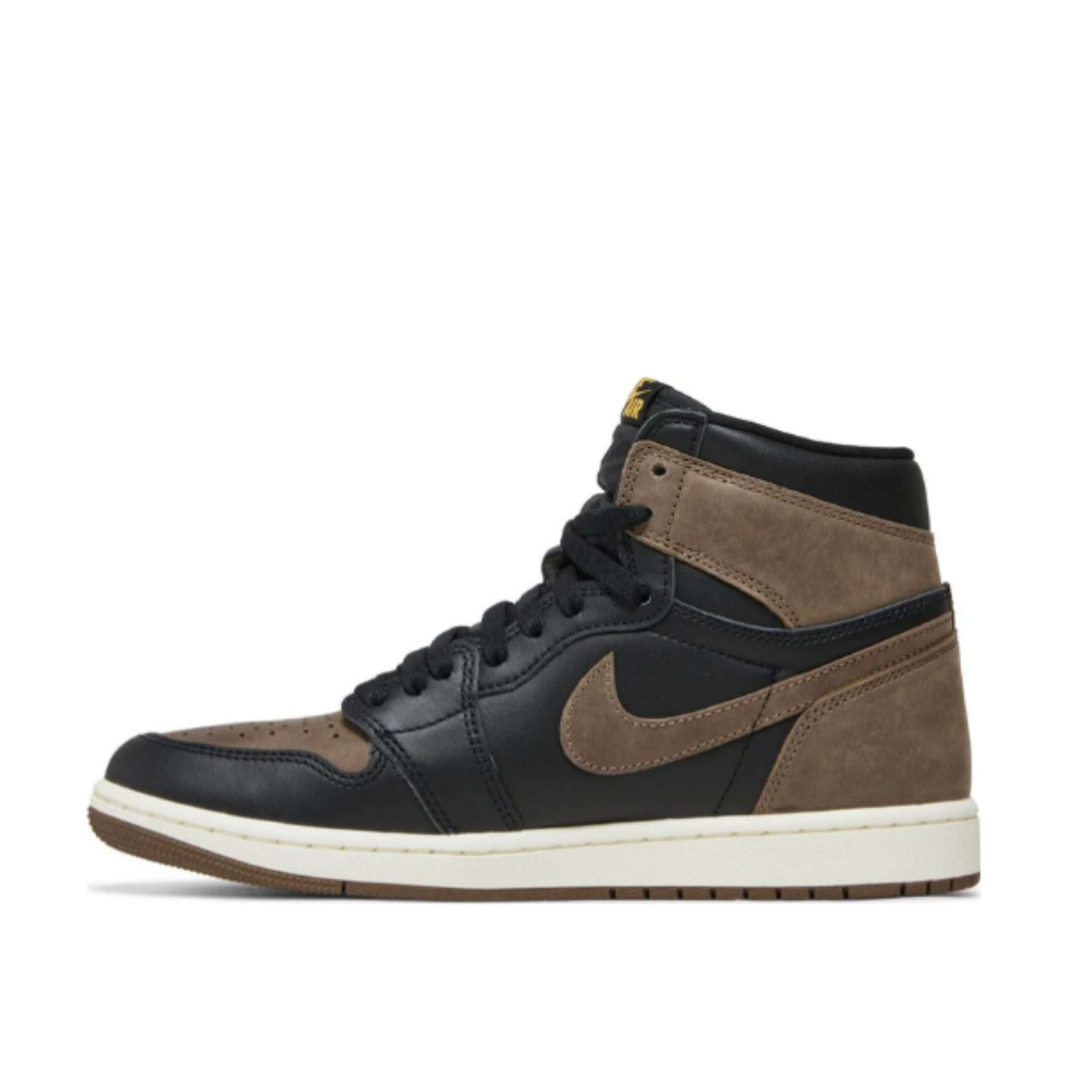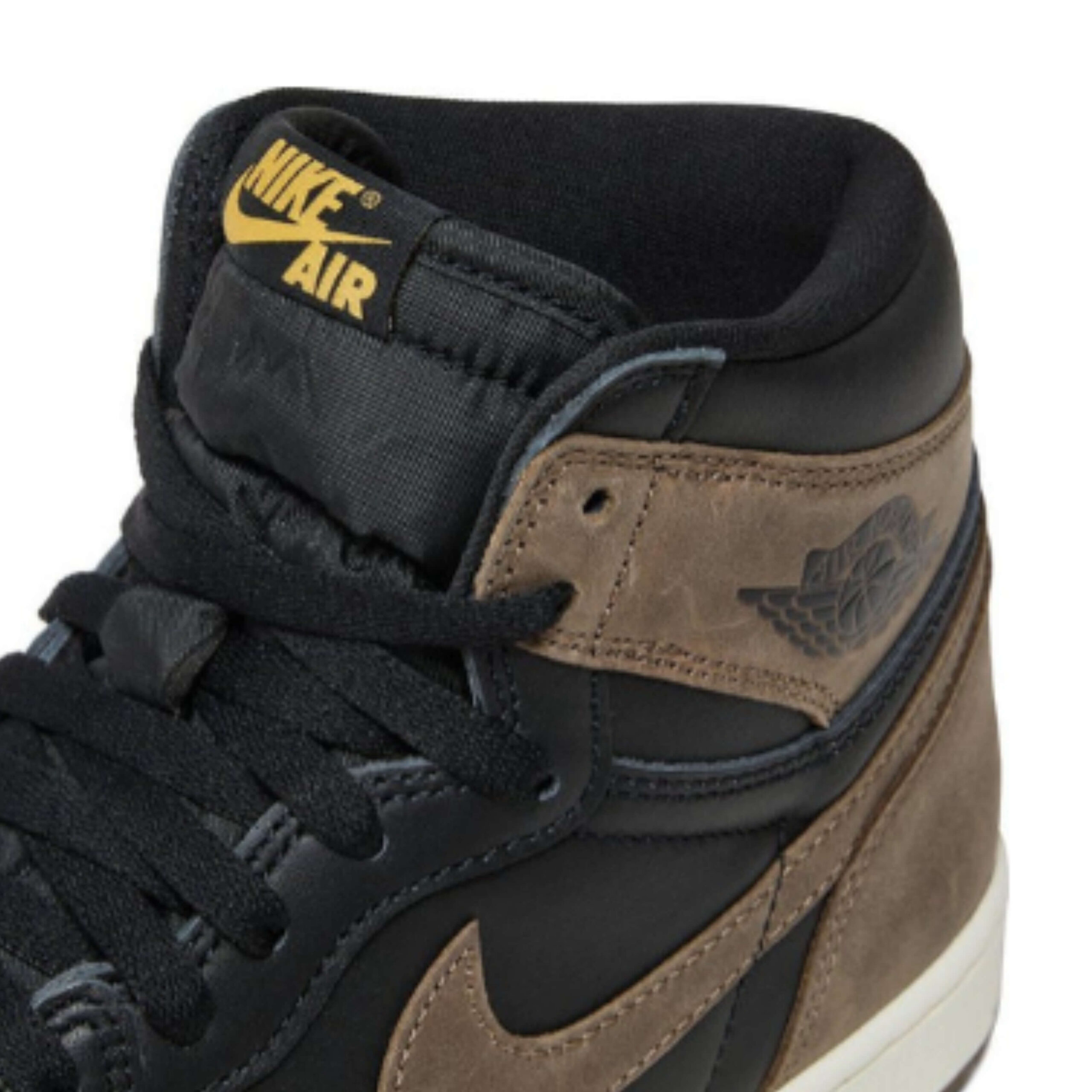 The meticulously crafted leather and nubuck upper, touched with shades of palomino and black, resonate opulence. Signature details like the iconic Jordan wings logo and the flowing Swoosh bring the perfect juxtaposition, harmonizing old-school vibes with new colors. The Metallic Gold Nike Air logo on the tongue adds the perfect pop of color.