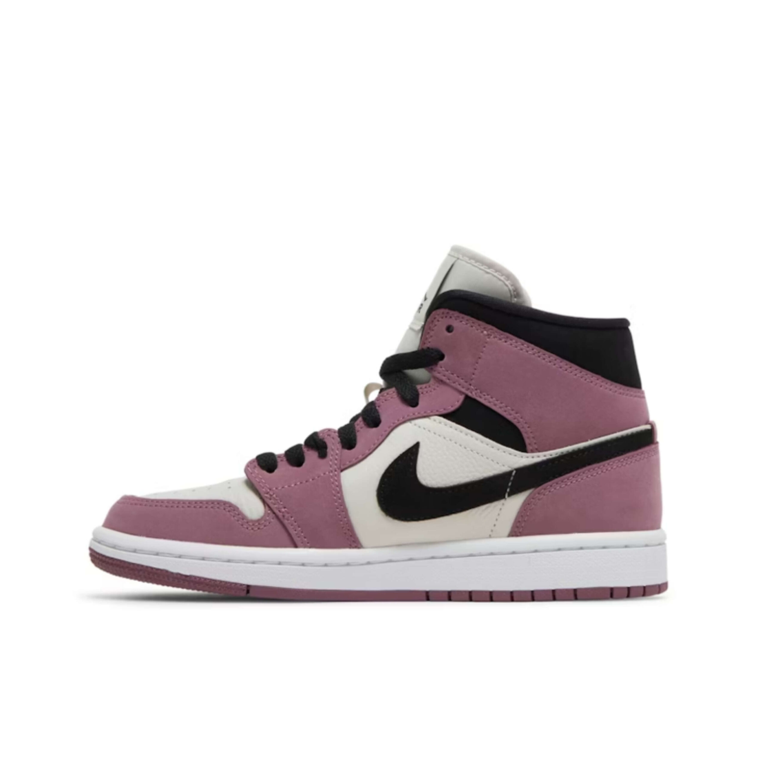 The Air Jordan 1 Mid Berry Pink (Women’s) was made for both comfort and utility, meaning that it can be worn to play a game of basketball or to walk around town.