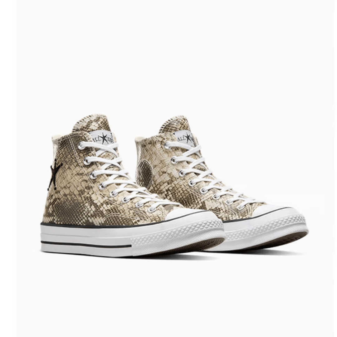 Step up your style game with the Converse Chuck 70 Hi Stüssy Snakeskin A11674C. This exclusive collaboration features a bold snakeskin pattern on the iconic high-top silhouette, merging classic Converse design with Stüssy’s streetwear edge. Crafted with premium materials, the sneaker offers superior comfort and durability, making it perfect for everyday wear. The timeless Chuck 70 details, like the signature toe cap and high-top structure, ensure these standout sneakers are as functional as they are fashionable.