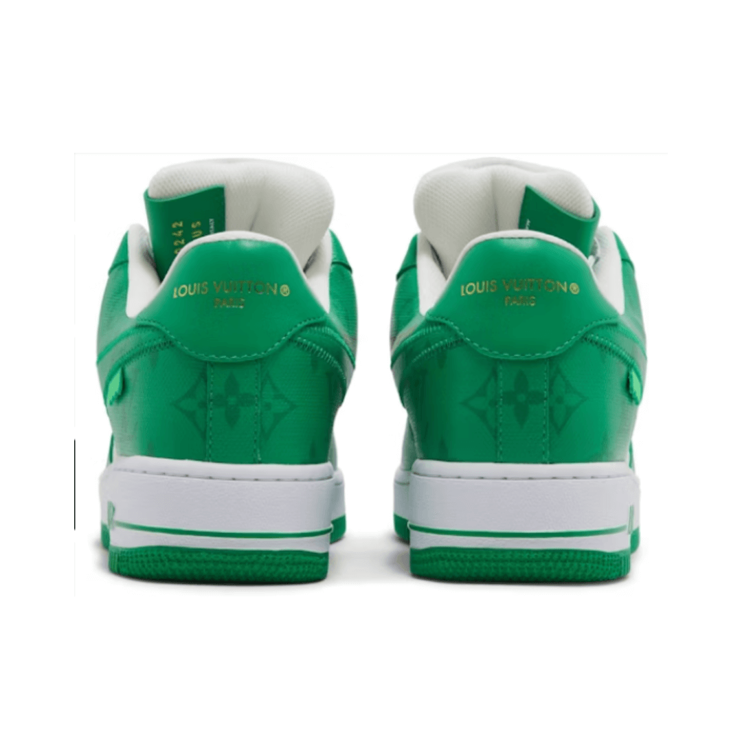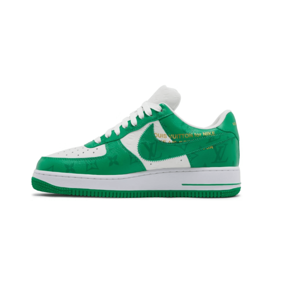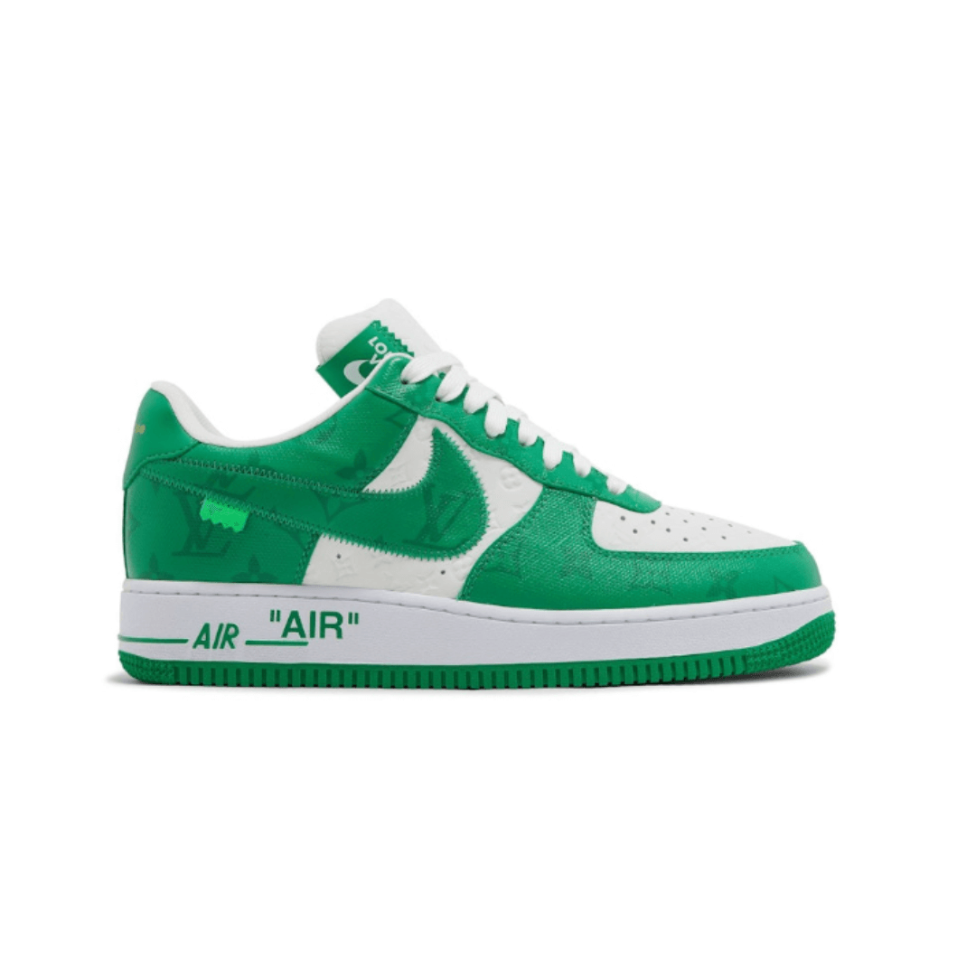 Introducing the Louis Vuitton x Nike Air Force 1 Low By Virgil Abloh in White Green. This collaboration between Louis Vuitton and Nike showcases the iconic Air Force 1 silhouette with Virgil Abloh’s signature touch. With a fresh white base and vibrant green accents, these sneakers merge luxury and sportswear effortlessly. Ideal for sneakerheads and fashion enthusiasts alike, these kicks are a must-have addition to any collection.