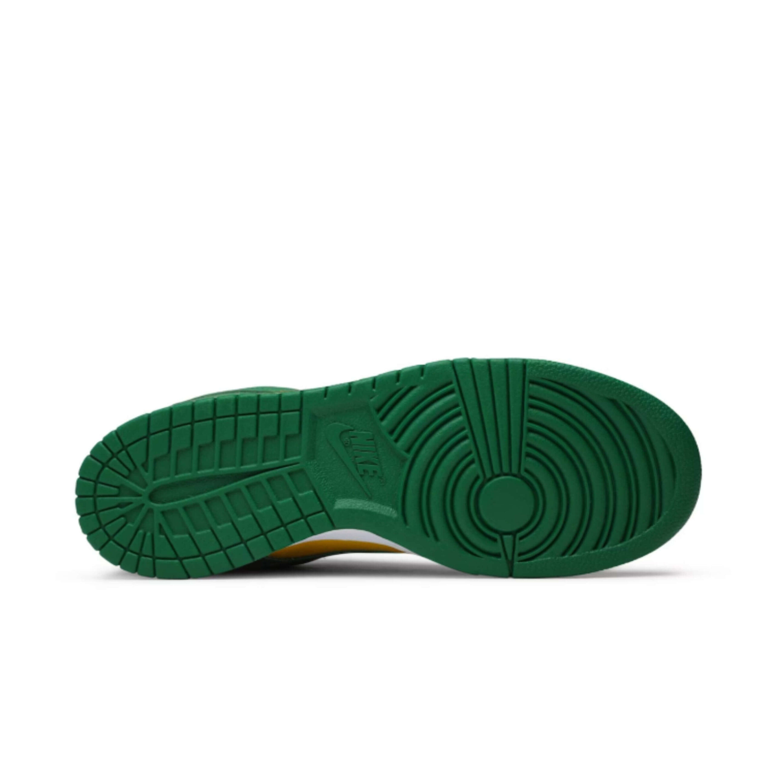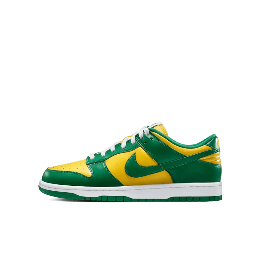 This Dunk Low Brazil features a yellow leather upper with green overlays and white detailing. A white midsole, green outsole, and yellow Nike branding on the heel complete the design. These sneakers released in May of 2020 and retailed for $100 USD. The Nike Dunk Low Brazil (2020/2024) restocked in February of 2024 and retailed for $115 USD.